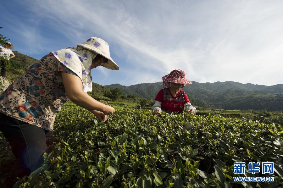 福建省泉州市安溪县大坪乡茶农在茶园采茶(2013年9月28日摄)