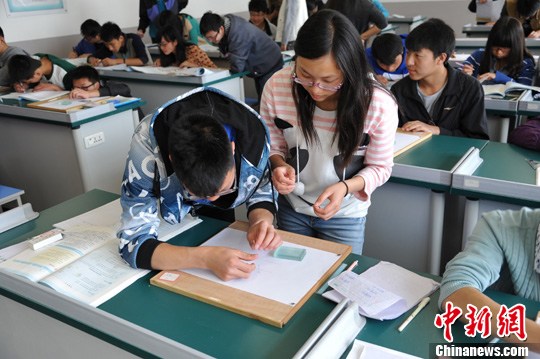 近年来,以北川中学为代表的北川教育突出“因材施教、彰显特色”的育人理念,让山区孩子享受更多公平教育机会,呈现出民族地区农村教育“低入口、高出口”的新面貌。图为5月12日北川中学高二8班学生正在进行测定玻璃折射率的物理实验。中新社发 杨勇 摄