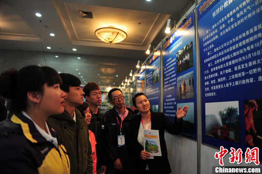 5月12日,工作人员在向市民讲解防灾减灾知识。当日是全国第六个“防灾减灾日”,沈阳在科学宫广场举办防灾减灾知识大型宣教活动。中新社发 于海洋 摄