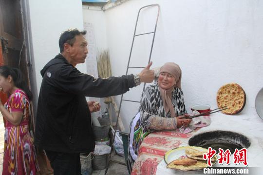 图为街区中日月古丽家现场制作烤馕。朱景朝 摄