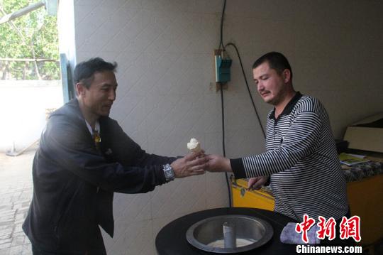 图为街区中赛杜拉用祖传的手工艺制作冰激凌。朱景朝 摄