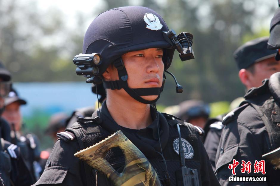 5月13日,海南省海口市在该市公安局特警支队举行反恐实战演练。据悉,为有效处置各类突发事件,海口警方建立了反恐武装巡逻“1+5”工作机制,即在市内设立了21个重点防范部位,对于发生在重点部位的暴恐事件,要求第一梯队警力1分钟内到达现场果断处置,第二梯队警力5分钟内到场支援。另外,海口市公安局还建立了公开武装巡逻震慑,便衣化装跟踪打击,社区民警和群防力量联防联控的防控体系。图为演习现场。