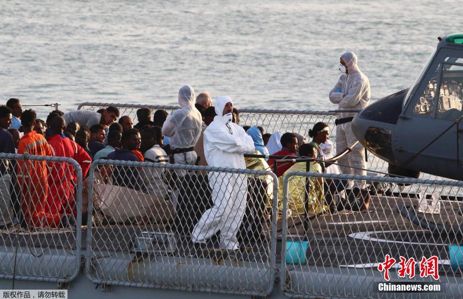 当地时间2014年5月13日,意大利卡塔尼亚,一艘非法移民船只在西西里岛和非洲北部海域之间失事,导致17人死亡。意大利海军救助206名非法移民。