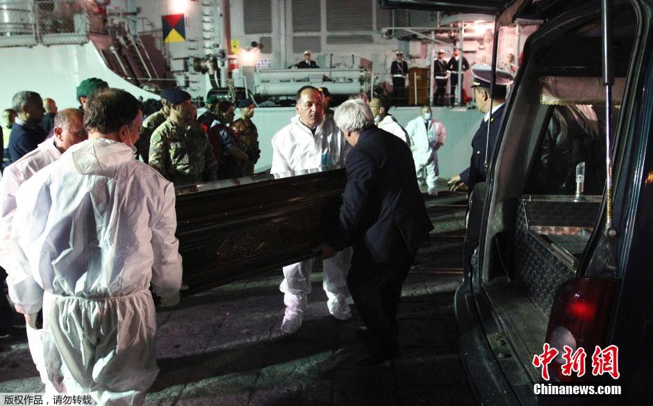 当地时间2014年5月13日,意大利卡塔尼亚,一艘非法移民船只在西西里岛和非洲北部海域之间失事,导致17人死亡。意大利海军救助206名非法移民。