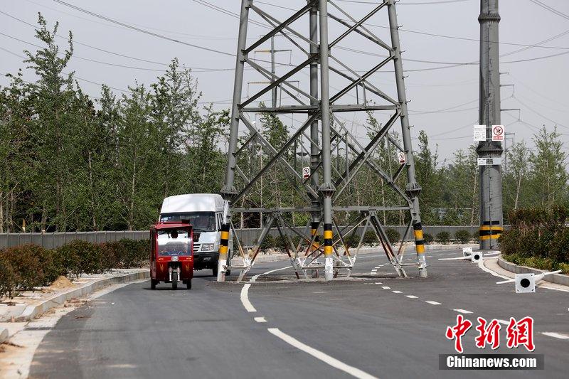 2014年05月12日,郑州市火车东站东北侧107省道东侧,一下穿隧道北半幅辅道路中间立着一个高压输电线塔。线塔上方是22万伏高压输送线路,由于线塔占道,道路变窄,最窄处仅剩不到三米。据了解目前,该路段还未通车。但在现场,依然有车辆从线塔旁缓慢通过。