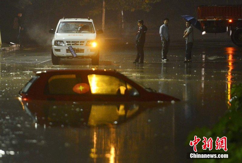2014年5月14日凌晨,在江西九江市开发区长江大道,市民在推车在水中艰难前行。据了解5月8日以来,南方出现大范围持续性强降雨过程,引发洪涝、风雹等灾害,据国家民政部统计数据,截至5月11日20时统计,此次过程造成江西5市20个县(市、区)29.3万人受灾。据国家民政部统计数据,宜春、九江、上饶等5市20个县(市、区)29.3万人受灾,1100余人紧急转移安置,600余人需紧急生活救助;300余间房屋倒塌,400余间不同程度损坏;农作物受灾面积23.1千公顷,其中绝收500余公顷;直接经济损失1.3亿元。