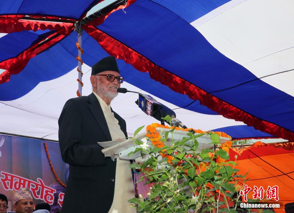 5月14日是尼泊尔传统节日“佛诞节”,在该国“佛祖故乡”蓝毗尼,来自世界各地的佛教信众朝拜佛祖释迦牟尼的出生地“圣园”。当天,尼泊尔政府与蓝毗尼发展委员会在“圣园”举行盛大集会,吸引了近千人参加。当地民众冒着酷暑,身着盛装,现场表演了孔雀舞、手鼓等节目,表达对佛祖的崇敬。图为尼泊尔总理苏希尔·柯伊拉腊与中国国家宗教事务局副局长陈宗荣在“佛诞节”庆祝活动上互相致意。中新社发 符永康 摄