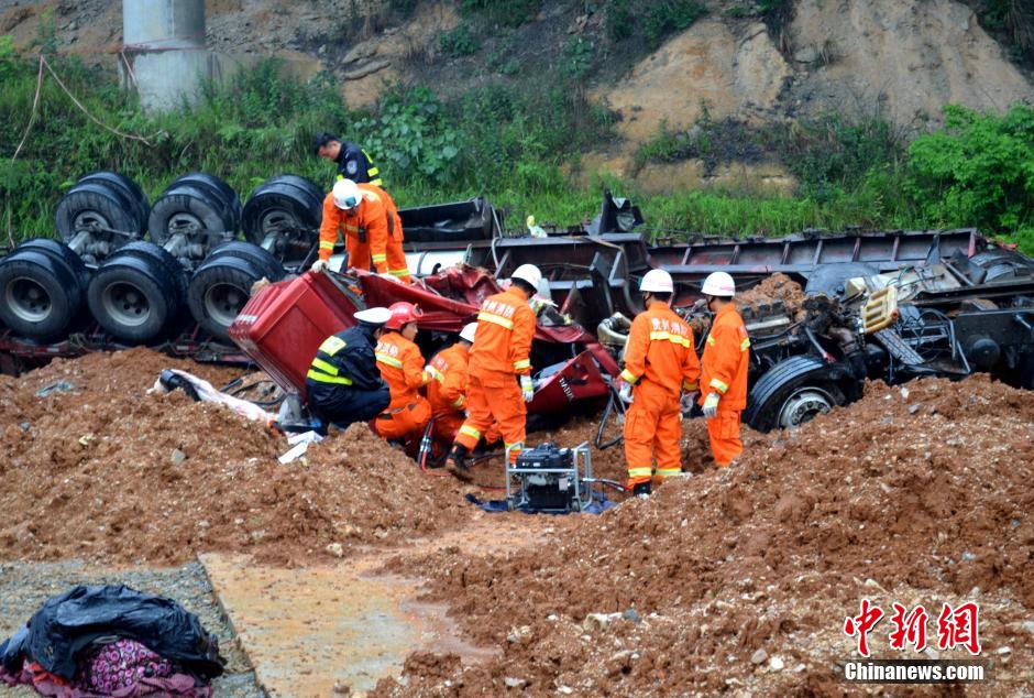 贵州境内一挂车坠下20米高桥解体 2人遇难