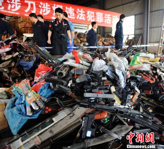 5月15日,长沙警方在宁乡县大成桥镇集中销毁各类枪支1436支(含439支报废枪)、仿真枪2800支、管制器具3402把。这些枪支器具均系长沙警方在2012年4月以来的缉枪治爆专项行动中所收缴的。胡喆 摄