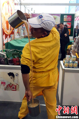 图为展示拉茶。中新社发 赵凛松 摄