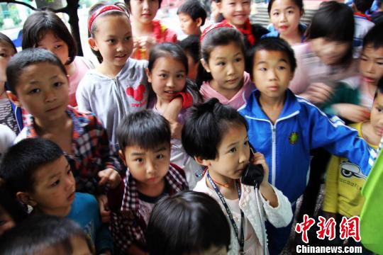 5月15日,湖南省永州市道县第三小学的留守学生正在给父母打电话问好。当天是第21个国际家庭日,结合“人人健康,家家幸福”这一主题,该校组织留守学生给常年在外打工的父母打电话问好,报告自己在学校和家里的情况。图为留守学生正在等待打电话。何红福 摄
