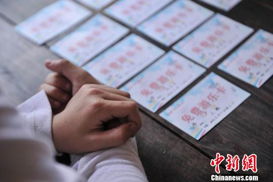 图为工作人员正在为农村留守儿童和贫困学生等发放免费游乐卡。陈超 摄