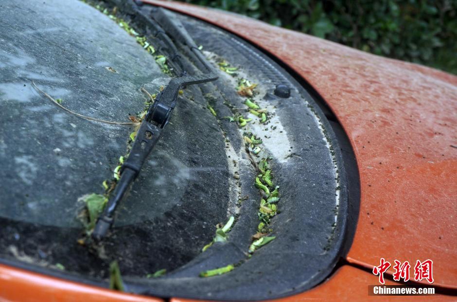 图为树下停放的汽车成为“国槐尺蛾”的“游乐场”。周小云