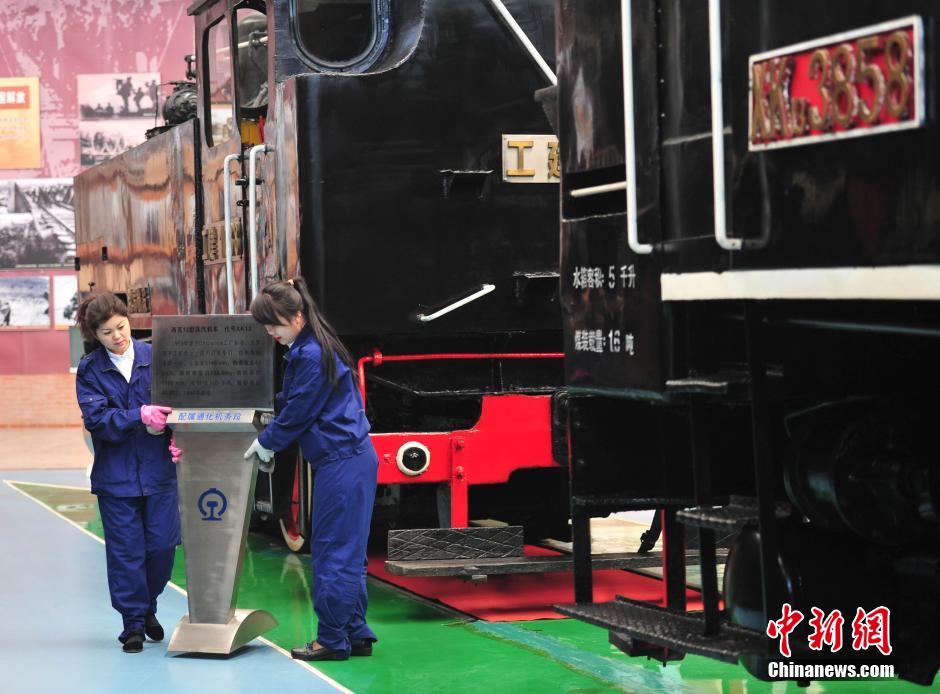 5月15日,工作人员在沈阳铁路陈列馆内擦拭老式火车头机车,迎接即将到来的"5·18国际博物馆日"。据了解,在这个展馆里,浓缩了沈阳铁路近120年的历史,不仅有1903年使用的铁路设备,也有现在正在使用的设备,展馆保留了1954年以来的火车运行图、历史货物发送量变化图。展馆里还再现了詹天佑工作的场景,詹天佑主持修建的关外铁路锦州段是沈阳铁路局第一条铁路线。中新社发 于海洋 摄