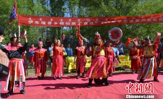 5月16日至18日,新疆霍城县伊车嘎善锡伯乡举行了盛大民间祭祀和娱乐活动庆祝“西迁节”,缅怀先辈屯垦戍边西迁壮举。图为锡伯族群众举行祭祀并跳萨满舞。 丁丽 摄