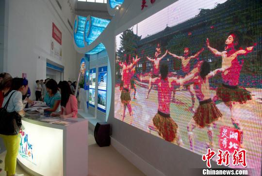 图为华中旅游博览会电子大屏幕播放的“领秀湖北”宣传片。 张畅 摄