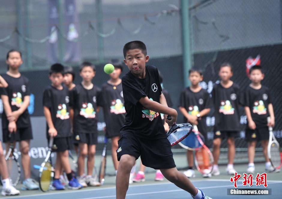 5月19日,“明日之星”青少年网球训练营重庆站开拍。来自重庆、成都、昆明等地区的50名7岁至12岁的青少年网球选手齐聚于此,进行为期5天的封闭式训练。在训练中,网球选手们将接受国内顶级青少年教练的指导,强化步伐、击球耐力等网球基本技能,学习当今先进网球技术。陈超 摄