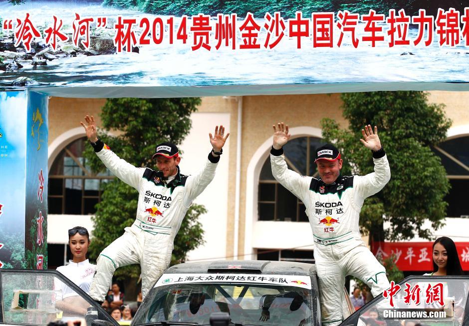 2014“冷水河”杯中国汽车拉力锦标赛经过三天的激烈角逐5月19日在贵州省金沙县落下帷幕,来自国内的115辆赛车参加本站比赛,斯柯达红牛车队内尔-麦克西夺得全场亚军。中新社发 赵振清 摄