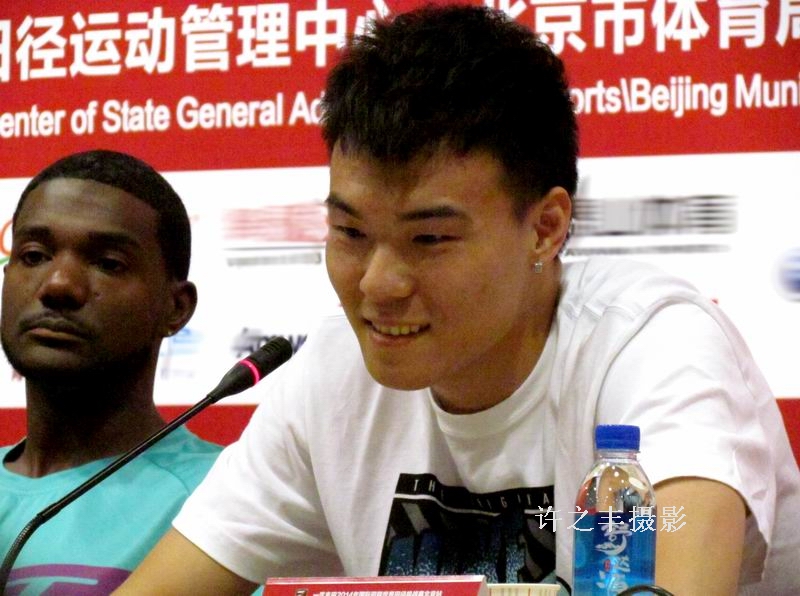 2014年5月20日下午,2014年国际田联世界田径挑战赛北京站赛前运动员与媒体见面会,在国家体育场(鸟巢)新闻发布厅举行。来自美国的男子100米运动员贾斯汀*加特林、俄罗斯跳高运动员伊万*尤科夫、牙买加女子100米运动员坎贝尔*布朗、中国的女子铅球选手巩立姣和男子跳远运动员李金哲出席了本次媒体见面会。其中加特林在刚刚结束的钻石联赛上海站的比赛中以9秒92的今年世界最好成绩获得了男子100米冠军;坎贝尔*布朗在2012年伦敦奥运会上以10.81秒获得女子100米铜牌;伦敦奥运会女子铅球季军巩立姣在今年3月9日的波兰世界室内田径锦标赛中,以19米24获得了女子铅球铜牌;而中国男子跳远选手李金哲也在同一比赛中以8米23的成绩获得银牌;男子跳远选手伊万*尤科夫在今年5月10日的多哈钻石联赛中跳出他的个人最好成绩2.41米,并获得冠军。