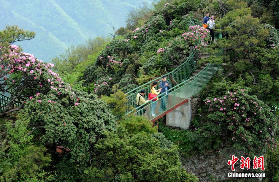 5月,是高山杜鹃绽放的季节。四川南江县光雾山上,漫山遍野杜鹃怒放,娇艳花朵映红山林。因其种类繁多,形态各异,成为中国十大杜鹃花观赏地之一。游山赏花的游客频频举起相机,一道道靓丽迷人的风景瞬间定格。程永红 摄