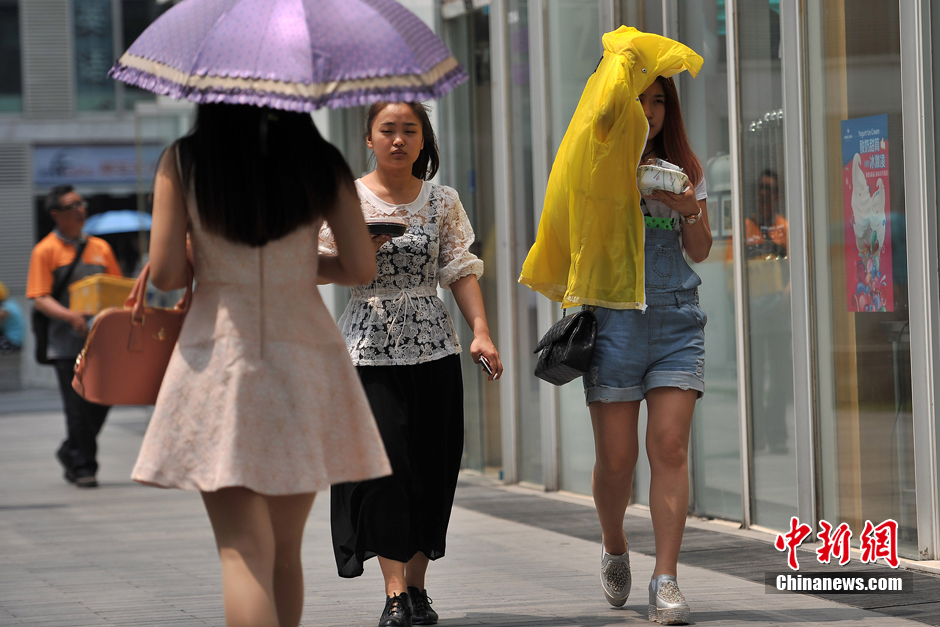 5月22日,北京迎来入夏以来的首个高温日。上周起,北京的气温就告别了大起大落的“过山车”状态,稳定地在30度以上“高位”运行。大街小巷也已经启动了“短裙飘飘”的模式,不过飘飘的短裙虽带来了丝丝凉爽,却无法抵挡热辣的阳光。 据气象部门预测,本市最高气温有望达35℃左右,周五夜间到周六白天,一场降雨将把最高气温打压到27℃。雨后放晴,周日气温将重回32℃。中新网记者 金硕 摄