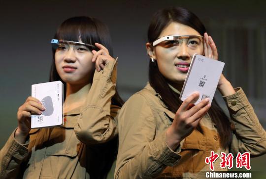模特戴着谷歌眼镜、手捧跨超本《红楼梦》进行展示。 泱波 摄