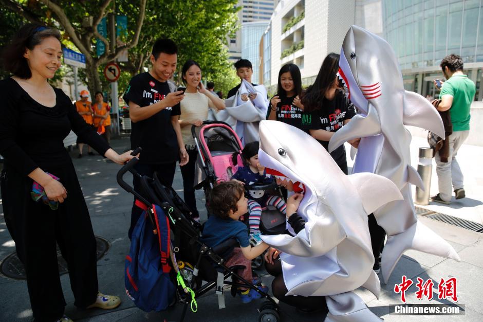 小白鲨”现上海街头 呼吁人们拒食鱼翅保护鲨鱼