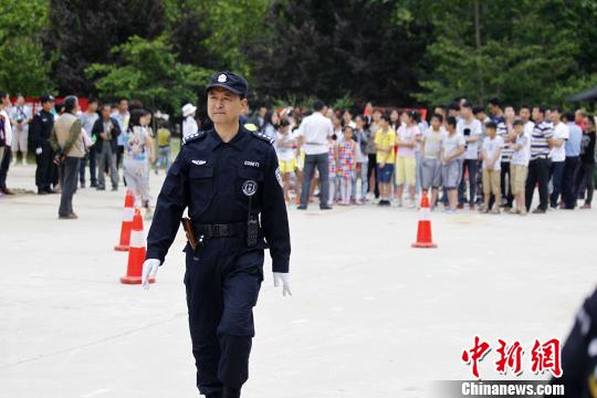 5月25日,河南三门峡豫西大峡谷举行“奖黄金背人赛”,特警配枪维护秩序。中新社发 王中举 摄