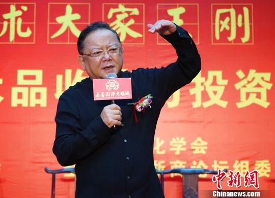 5月24日,中国著名演员、收藏家王刚在2014年中国嘉善木雕文化博览会上自曝当年在收藏初期“吃亏不少”,“如今市面上的收藏品假货泛滥,90%都不是真品”。中新社发 李晨韵 摄