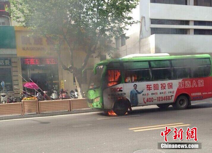 江苏大丰公交车行驶中突然起火