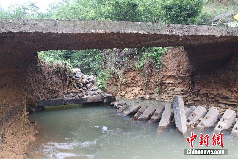 山洪过后江西宜春现“路坚强” 路面悬空不垮塌