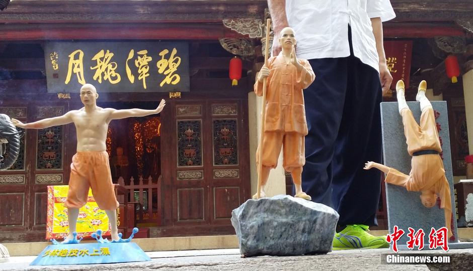 水上漂”、“一指禅”、“铁头功”……一尊尊造型逼真,形态生动的3D人物造型亮相福建泉州南少林寺。5月27日,福建泉州南少林寺内,现代3D技牵手传统南少林武术,将流传千百年的传统国粹更好的保护传承下去。图为工作人员正在用仪器扫描数据南少林武僧的3D数据。郭斌 摄