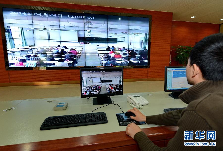福建师范大学通过电子眼观察无人监考考场(4月24日摄)。