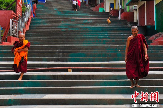 近日,缅甸旅游协会会长在接受中新社记者专访时表示,孟中印缅经济走廊中,缅甸处于走廊的中部。目前缅甸政府与中国政府在旅游方面有着紧密合作,比如,允许中国游客免签进入到缅甸某些城市等,并正在筹备对中国游客开放更多旅游目的地城市。图为缅甸的佛教信徒。中新社发 任东 摄
