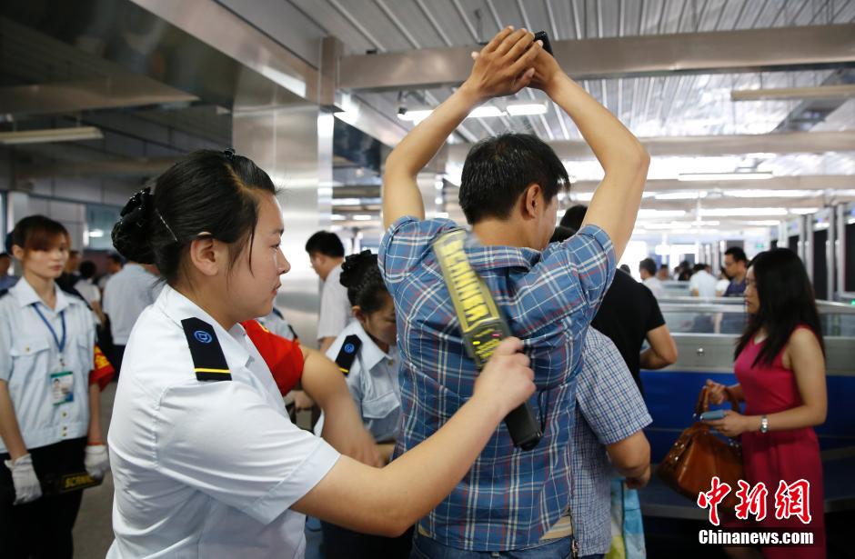 5月28日交通早高峰期间,乘客在导流栏内依次进入北京地铁龙泽站。继天安门东、天安门西、王府井、东单、建国门和西单6个地铁站后,北京近日又新增八角游乐园、天通苑北、龙泽3个“人物同检”地铁站。实施“人物同检”之后,乘客的进站时间有些延长。中新社发 刘关关 摄