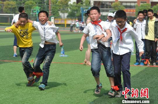 孩子们参加趣味游戏比赛。 邵刚 摄