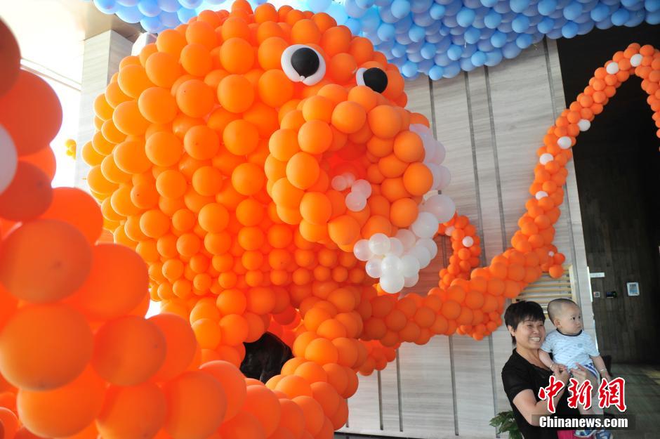 5月28日,山西太原,由万余只气球组成的“海底世界”吸引了小朋友的关注。临近六一儿童节,中国内地各项儿童游乐经济逐渐升温。中新社发 韦亮 摄