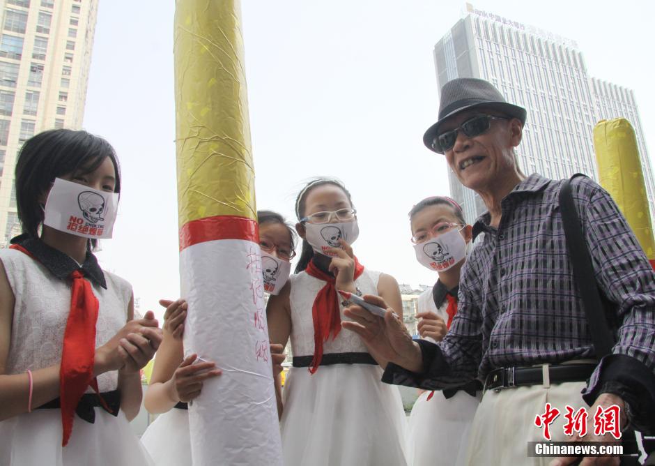 世界无烟日临近 合肥少年街头呼吁禁烟