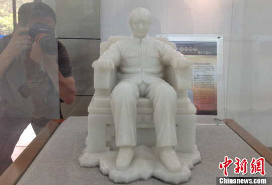 5月29日,参观者被南京中山陵孙中山纪念馆内展出的孙中山盐雕像吸引。今年正值孙中山奉安中山陵85周年,台湾盐业公司日前捐赠了一座孙中山盐雕像,高40厘米、重34公斤。据介绍,这座孙中山盐雕是由雕塑师罗广维一手操刀,从创意到制作完工,前后耗时半年之久。中新社发 泱波 摄