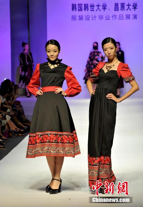 5月29日,韩国韩世大学、昌原大学服装设计毕业作品联合展演在2014中国(广东)大学生时装周上演。图为模特身着时装走秀。中新社发 刘卫勇 摄