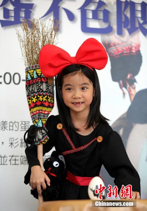 6月2日,台湾网络人气童星乔乔(于卉乔),以《魔女宅急便》电影版中小魔女的装扮,参加台北的一项立蛋活动。当天,台湾各地举办赛龙舟、立蛋等活动,庆祝端午佳节。 中新社发 陈小愿 摄