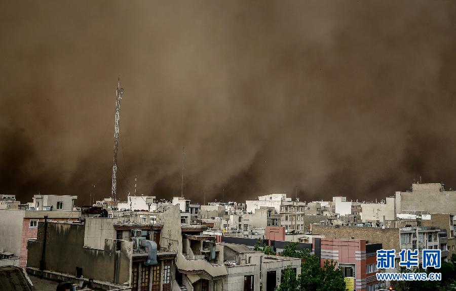 6月2日,伊朗首都德黑兰遭遇罕见沙尘暴袭击,造成四人死亡,据伊朗国家电视台报道沙尘暴来袭时最大风速达到每小时110公里,一些大树被连根拔起,风暴造成德黑兰部分地区电力中断,一些国际航班被取消。新华社发