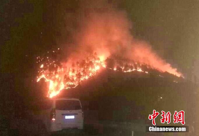 6月3日,四川乡城县热打乡元根山境内的“6.1”森林火灾因风力增强,出现飞火和跨沟火,火势迅速蔓延,过火面积已增致约31公顷。当地已组织了1300余人(其中森警60人)展开扑救。据悉,从康定、雅江等地抽调的森警正在前往增援,起火原因当地警方正调查中。图为乡城境内发生的森林火灾蔓延迅速。中新社发 钟欣 摄