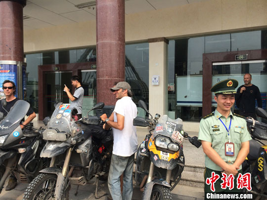 图为一支由美国、加拿大、阿根廷等国19人组成的摩托车骑行队。中新社发 王林 摄