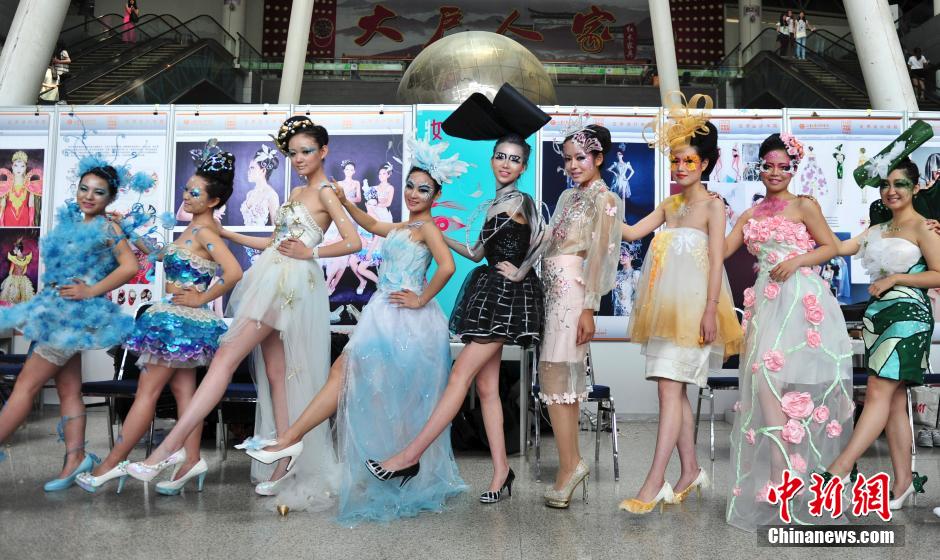 模特在大学生毕业装扮设计展上亮相。