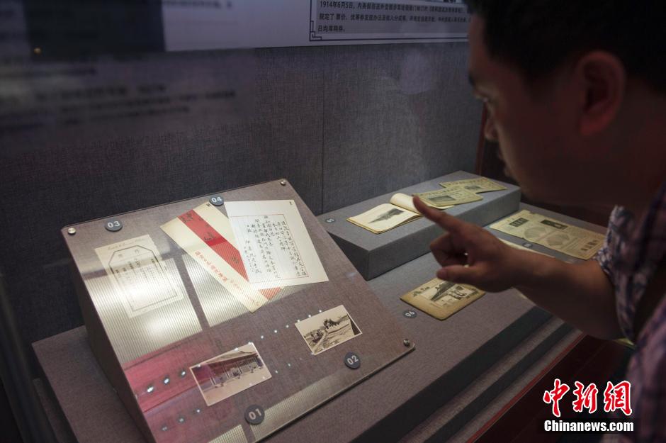 6月6日,民众在“百年颐和”开园百年纪念展上观看民国时期日本驻华使节在入园参观前向民国外交机构提交的申请。当日,颐和园对公众开放100周年纪念系列活动在颐和园揭开大幕,2014年“三山五园”皇家园林旅游节也同步开启。为纪念开放百年,2014年颐和园将面向游客举办包括百年图片展、文化论坛、桂花文化展等多项活动。中新社发 崔楠 摄