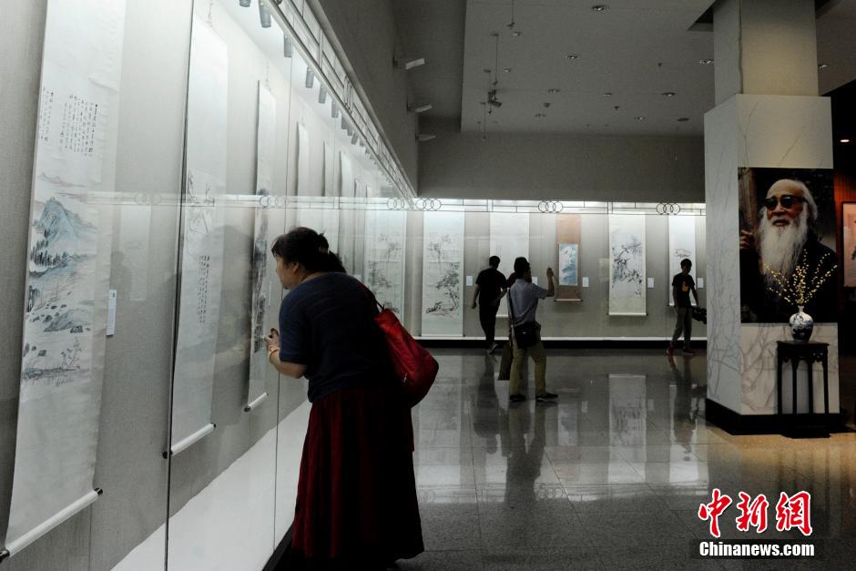 6月6日,两岸四家博物馆馆藏105件(套)张大千在不同时期创作的画作在吉林省博物院展出。此展系《万里江山频入梦——两岸张大千辞世三十周年纪念展》的第三站,也是在大陆展出的最后一站。这是迄今规模最大、档次最高的张大千画作展。今年9月,这些张大千的画作将跨越海峡,赴台北展出。中新社发 张瑶 摄