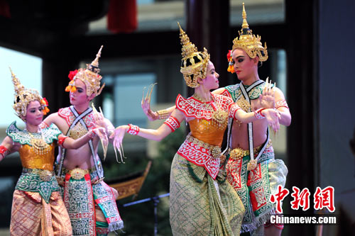 6月8日,“2014陕西泰国风情节”于西安开幕,泰国传统舞蹈、乐器演奏以及泰拳表演精彩纷呈。“泰国风情节”自2008年开始每年举办,成为此间民众了解泰国的重要窗口。泰国传统舞蹈表演精彩亮相。张远 摄