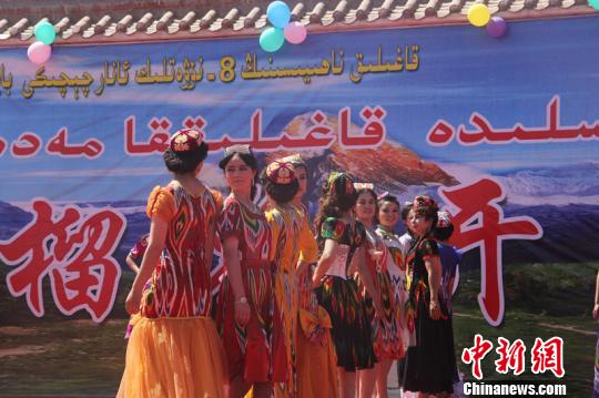6月9日,古丝绸之路重镇新疆叶城举办民族服饰表演赛,20位当地佳丽展示了传统服饰艾德莱丝绸和现代时尚服饰,给四邻八乡的观众献上了美的盛宴。朱景朝 摄