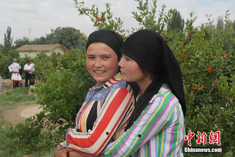 6月9日,正当石榴花开的季节,石榴之乡新疆叶城第八届石榴花节在伯西热克乡石榴风情园开幕。开幕式上当地文工团和普通群众表演了盛大的叶城赛乃姆。当日,来自四邻八乡的群众观看了开幕式表演,并在石榴园内徜徉。图为当地学生观看石榴花节开幕式表演。朱景朝 摄